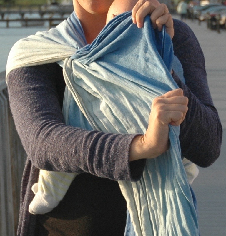 Ahora el bebé está en el fular y ya está listo para apretar!