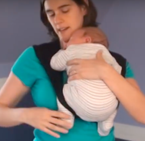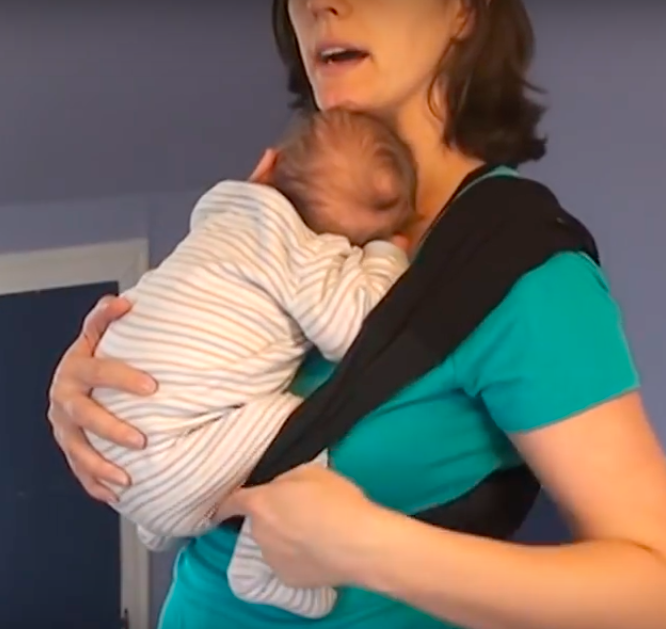 K’tan includes a few different holds in their directions. I find that most newborns (and older babies too) do best in the “hug hold” shown in the video above.