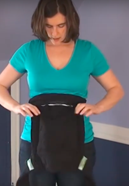 Step 1: Hold your carrier by the waist straps (the shorter straps) with the decorative panel turned toward you.